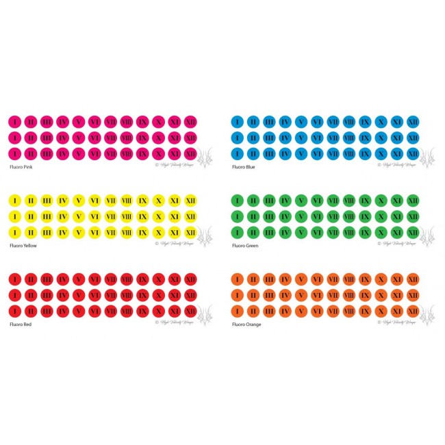 Fluoro Roman Numerals. 3 Dozen - 36pcs peel & stick numerals.